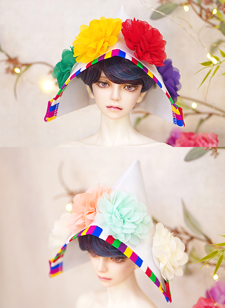 전통적으로 고깔모는 종이모자와 종이꽃으로 만들었지만